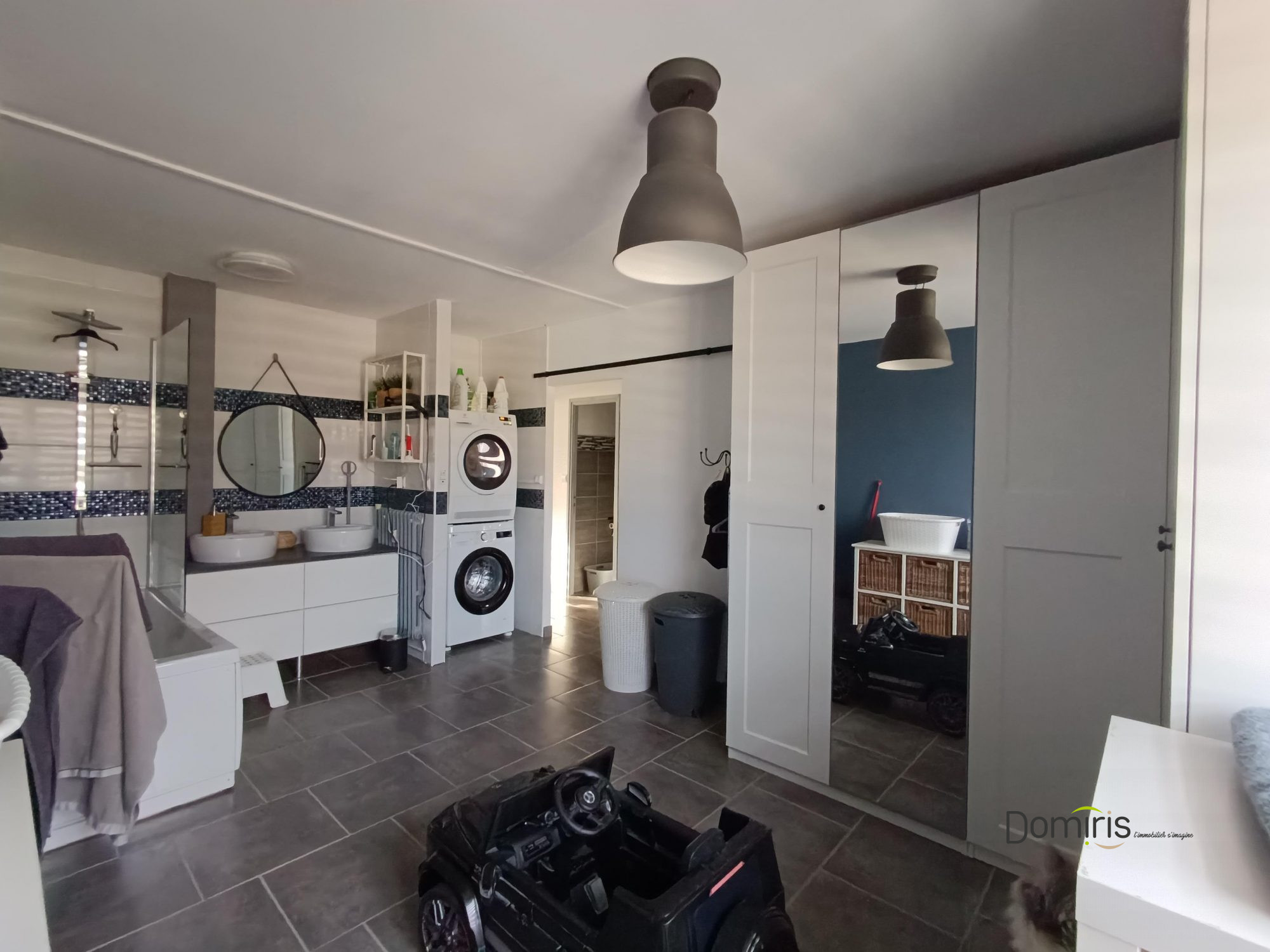 l'espace nuit se compose d'un wc séparé, deux chambres, un grandes salle de bain/buanderie/dressing pouvant être réaménager en 3e chambres comme à l'origine.